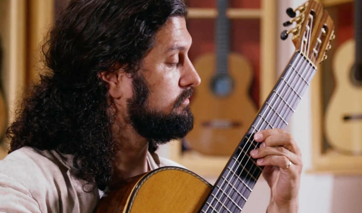 Here’s Aaron Larget-Caplan playing Roland Dyens’ Tango en Skai on a gorgeous 2015 Pepe Romero Jr. ‘Centenario’ model in cedar and CSA rosewood. The Centenario models honor the 100th anniversary of the birth of Romero’s grandfather, the great Celedonio Romero.